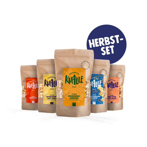 Wenn draußen das Herbstlaub raschelt, raschelt auch unser Popkorn in der Knuspertüte. Wir haben Dir die fünf besten Kreationen für gemütliches Herbstgeknusper in unserem bunten Herbst Set zusammengestellt.