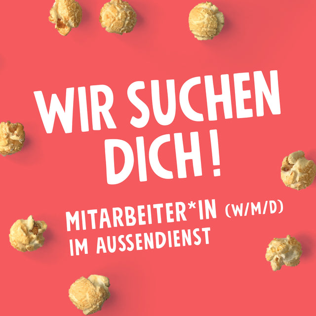 Du bist verKNALLT in Popcorn? Kundenkontakt lässt dein Herz aufpoppen? Dann bist du bei uns goldrichtig! Wir suchen ab Januar 2026 eine engagierte, flexible und kommunikative Persönlichkeit, die unser Vertriebsteam im Außendienst für Ost- und Norddeutschland verstärkt. In dieser Rolle trägst Du maßgeblich dazu bei, unsere einzigartigen Premium-Produkte bei neuen und bestehenden Popcorn Dealern bekannt zu machen. Mit Deinem überzeugenden Auftreten und Deinem Gespür für die Bedürfnisse unserer Handelspartner:innen sorgst Du dafür, dass jeder Kontakt nicht nur ein erfolgreicher Geschäftsabschluss wird, sondern auch ein echtes Geschmackserlebnis hinterlässt. Wenn Du gerne unterwegs bist, mit Leidenschaft verkaufst und Dich für Popcorn begeistern kannst, dann freuen wir uns darauf, Dich kennenzulernen!